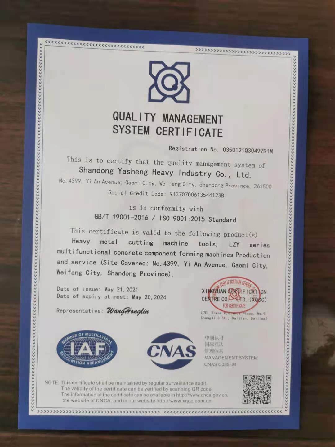 質(zhì)量管理體系認證證書