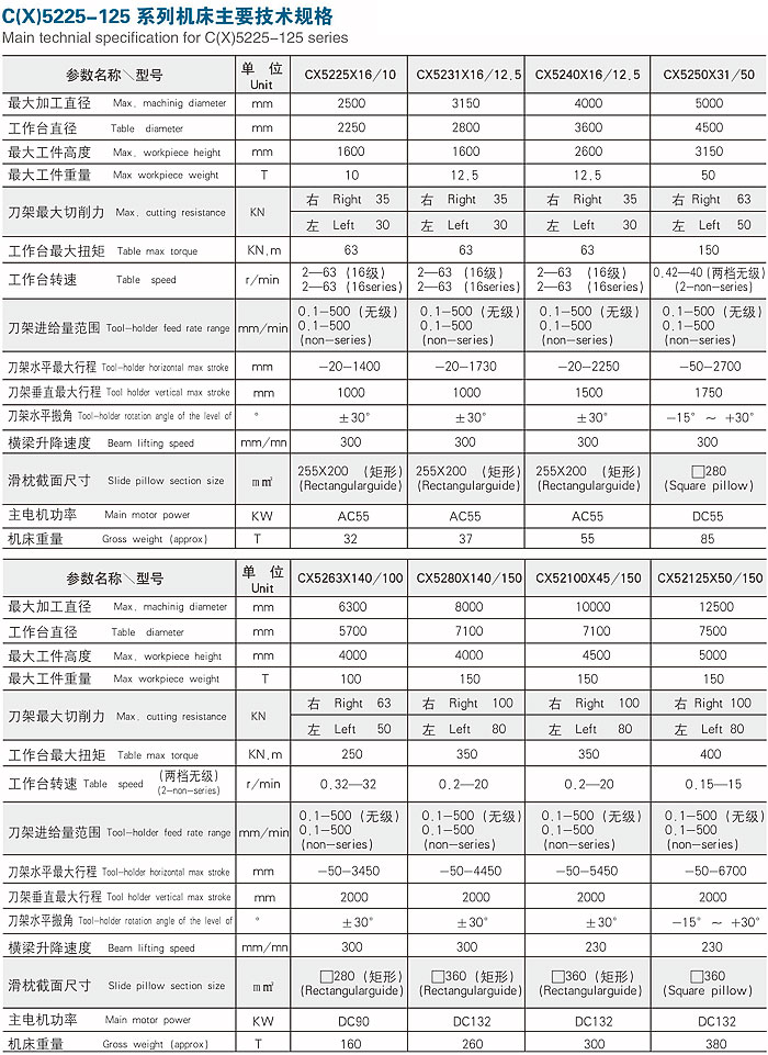 C(X)5225-125系列普通(數顯)雙柱立式車床